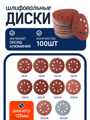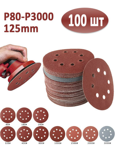 P1000 шлифовальные круги 125 мм на липучке 100 шт.