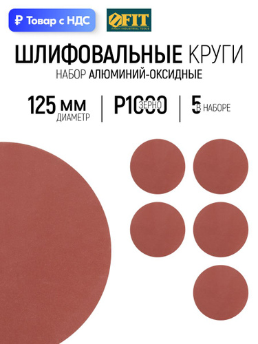 FIT Шлифовальный круг 125 мм под липучку 5 шт., наждачка Р 1000