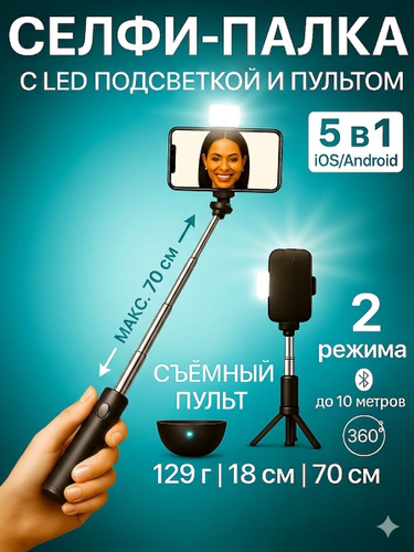 Штатив для телефона настольный, Селфи палка для смартфона, Монопод для телефона, Трипод, с Bluetooth пультом и подстветкой