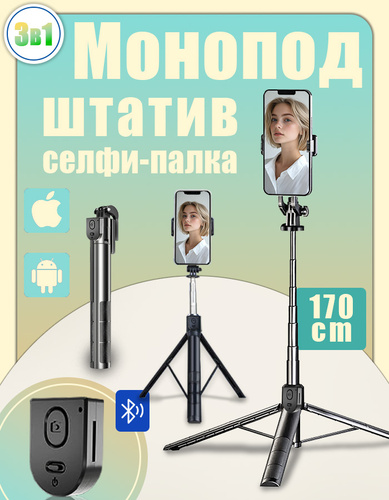 Штатив для телефона, Монопод для телефона, Трипод, Селфи-палка, Штатив с bluetooth пультом 170cm/360 панорама ,Совместим с iPhone и Android