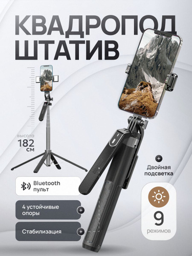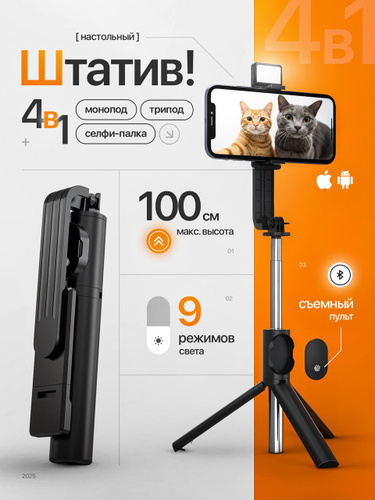 Штатив для телефона, напольный/настольный универсальный, монопод с подсветкой