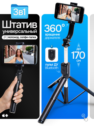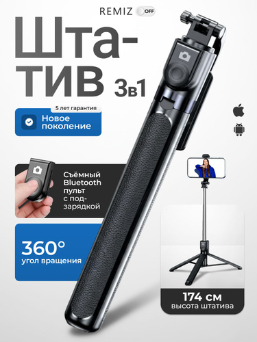 Штатив для телефона напольный, Селфи палка для смартфона, Монопод для телефона, со съемным Bluetooth пультом
