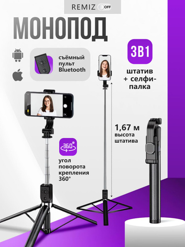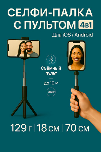 Селфи палка для смартфона с Bluetooth пультом управления трипод - монопод