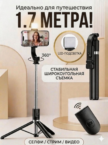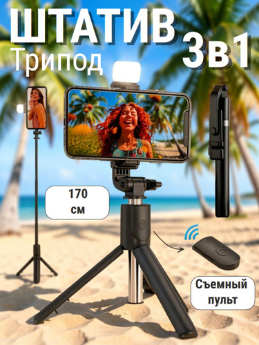 Штатив для телефона 1.70 м, напольный, настольный с лампой, селфи палка для смартфона, монопод, трипод