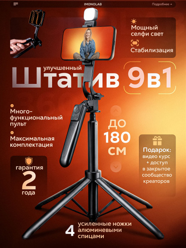 Штатив для телефона 172 см, напольный, настольный, трипод с лампой, монопод, селфи палка для смартфона