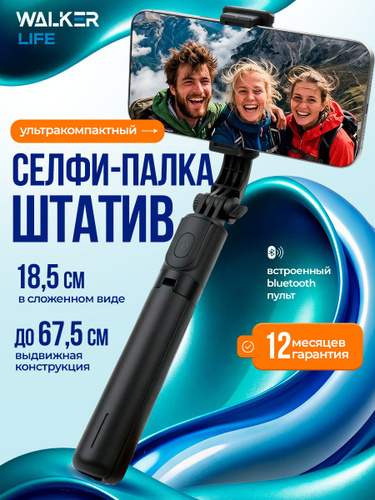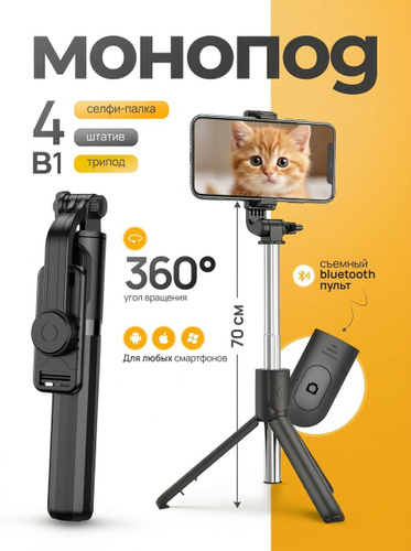 Монопод-трипод для селфи черный со встроенным штативом и Bluetooth-пультом Селфи-палка для смартфона 70см
