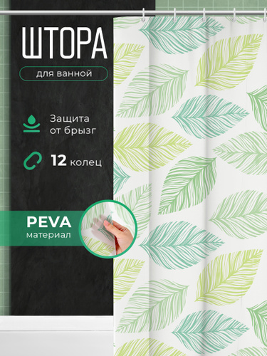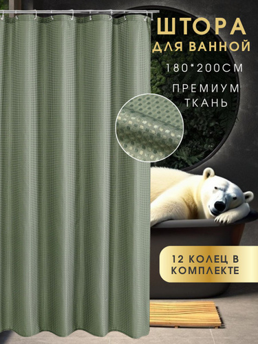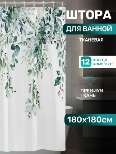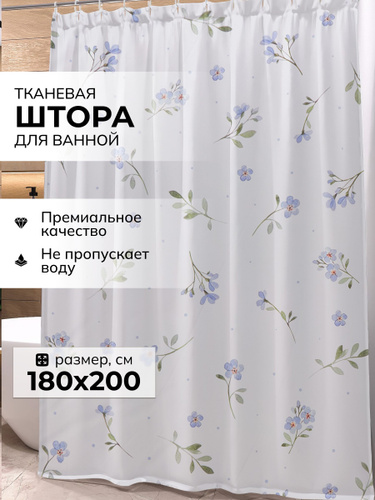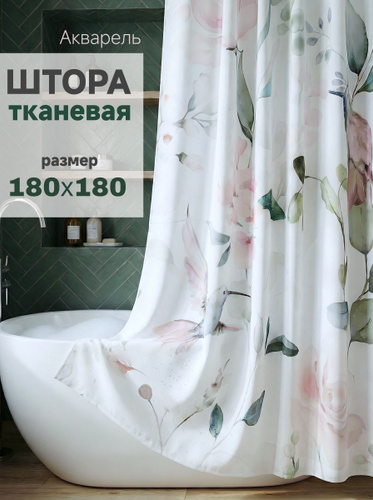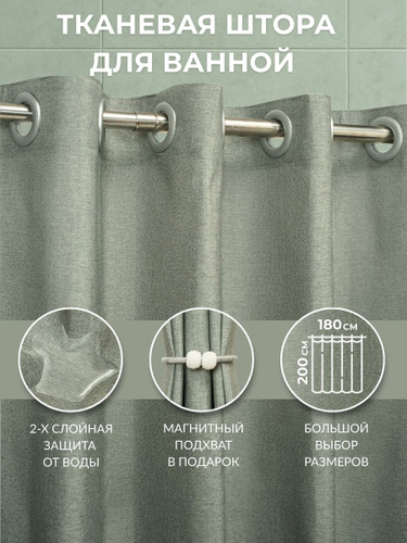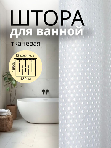 Штора для ванной тканевая, высота 200 см, ширина 180 см.