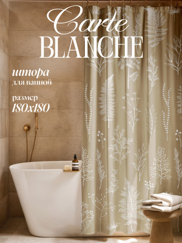 Carte Blanche Штора для ванной 180х180 см с кольцами, занавеска для ванной, бежевая