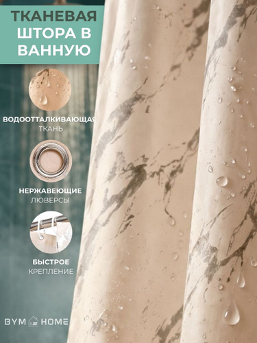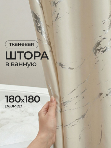 Штора для ванной комнаты тканевая 180*180 см бежевая
