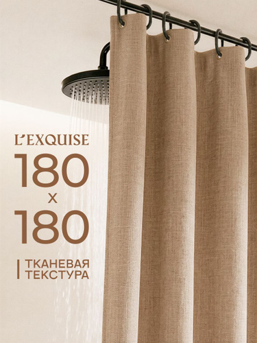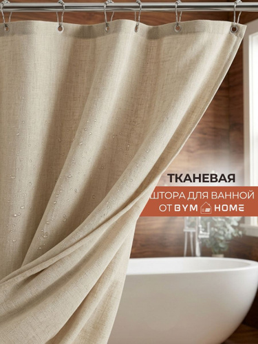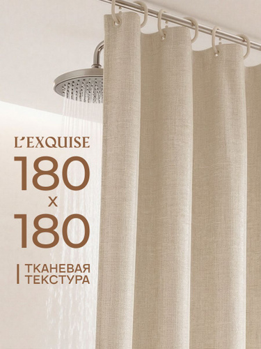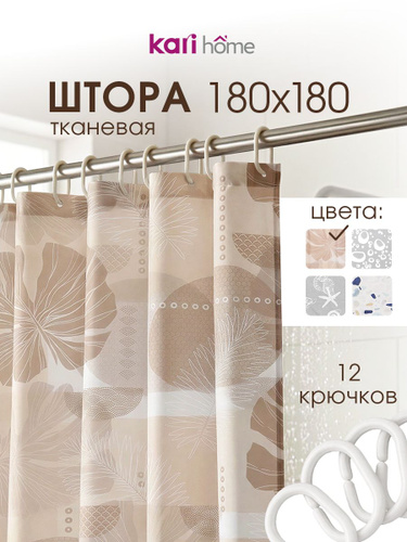 Штора для ванной 180х180см тканевая с крючками бежевая