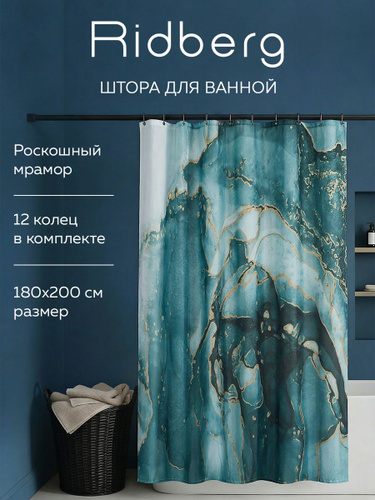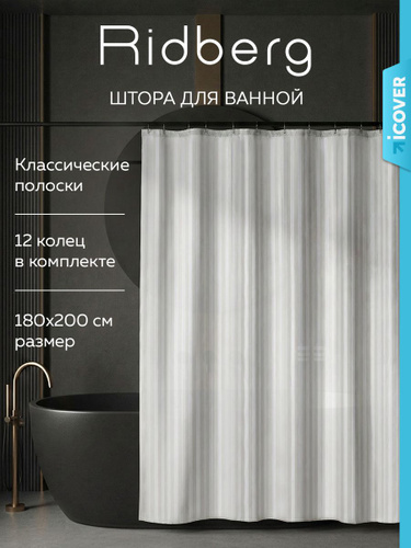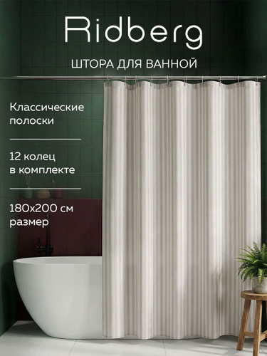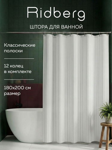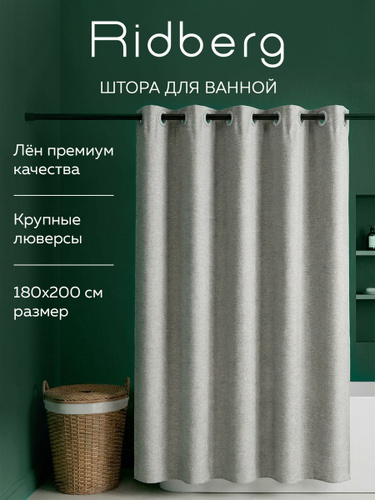 Тканевая штора для ванной комнаты, 180x200 см, Ridberg, водонепроницаемая, водооталкивающая, быстросохнущая
