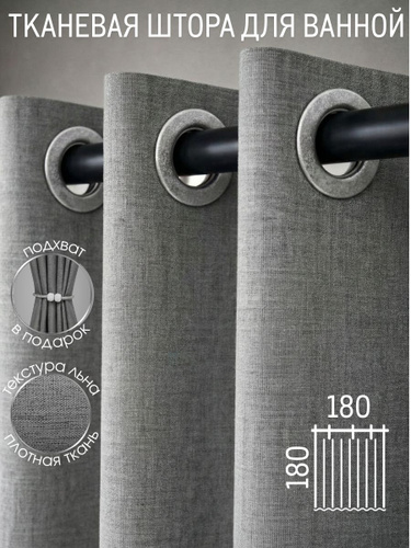Штора для ванной 180х180 тканевая водонепроницаемая серая