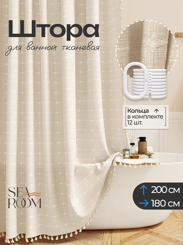SeaRoom Штора для ванной тканевая, высота 200 см, ширина 180 см.