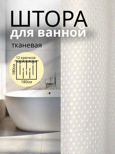Штора для ванной 180х180см тканевая с крючками белая