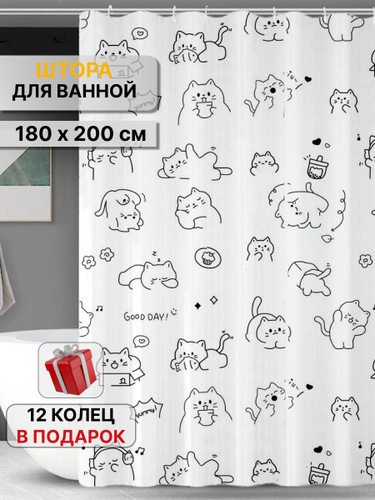 Шторы для ванной с котом