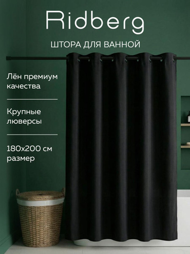 Штора для ванной тканевая, шторка для душа 180*200, занавеска для ванной Ridberg Home Черная
