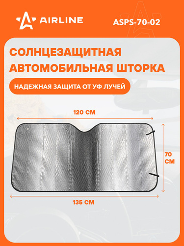 Солнцезащитная шторка на лобовое стекло 70*135 см на присосках AIRLINE ASPS-70-02