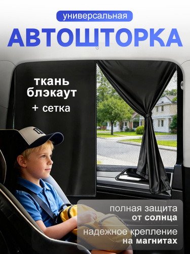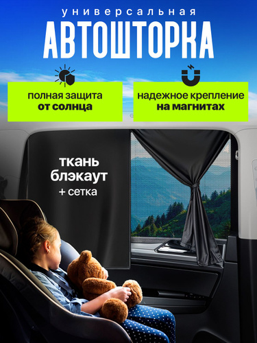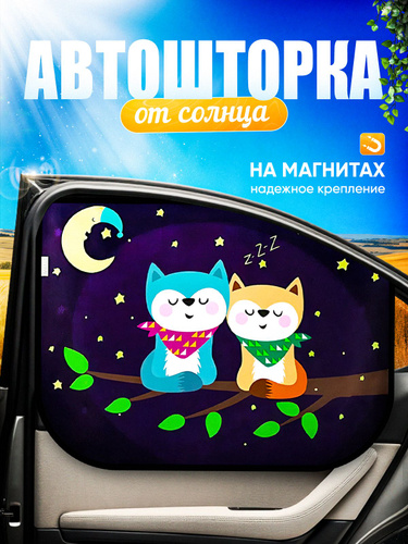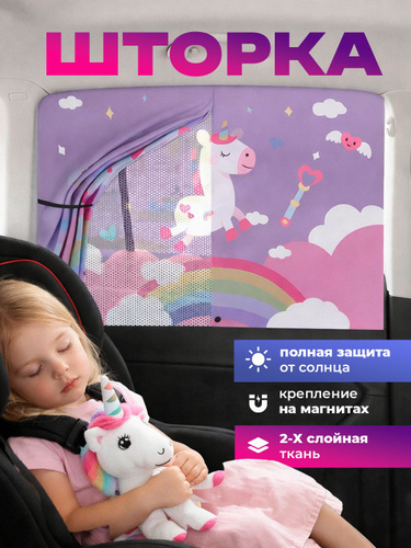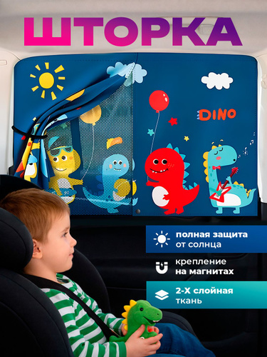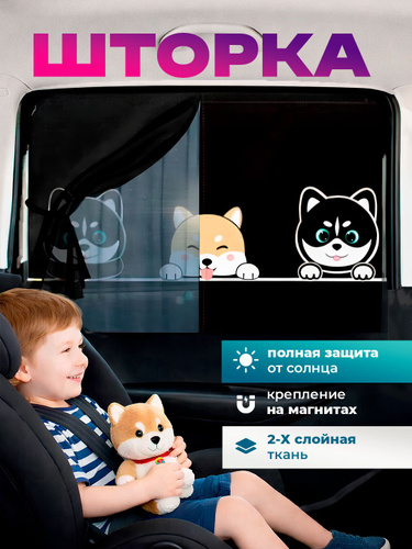 Шторка в машину от солнца детская двухслойная на магнитах / Солнцезащитная для автомобиля