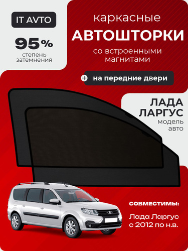 Автошторки каркасные Лада Ларгус Lada Largus (2012-н.в) на встроенных магнитах передние 2 шт, затемнение 95%