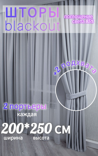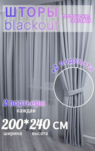 Шторы блэкаут комплект однотонные 240*400 см светло серый цвет
