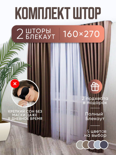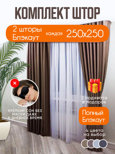Шторы коричневые однотонные блэкаут 270*320 см для спальни, гостиной, детской комнаты, зала