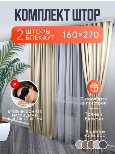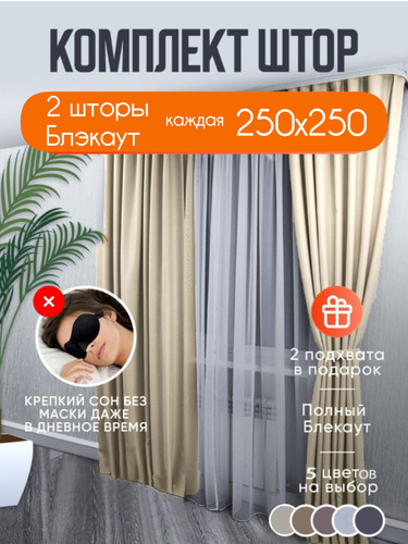 Шторы песочные однотонные блэкаут 270*320 см для спальни, гостиной, детской комнаты, зала