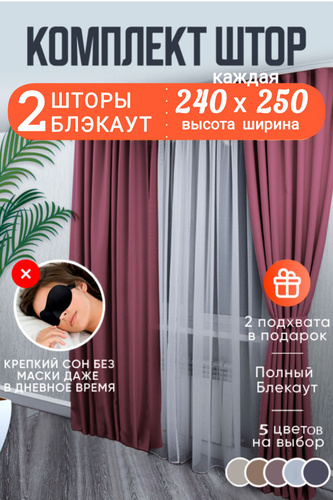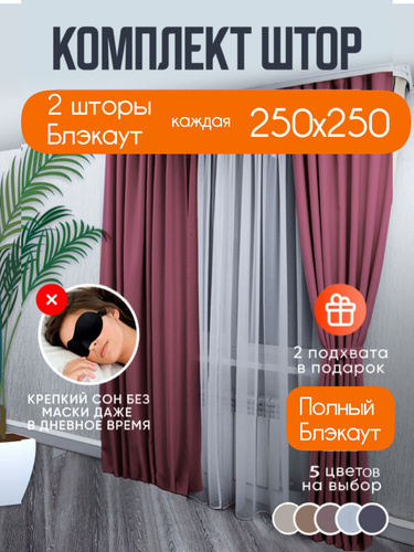 Шторы блэкаут комплект однотонные 250*500 см ПЫЛЬНАЯ РОЗА для спальни затемняющие шторы