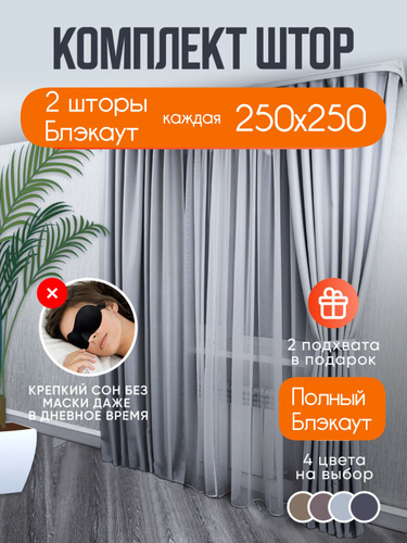 Шторы блэкаут комплект однотонные 250*400 см светло серый цвет