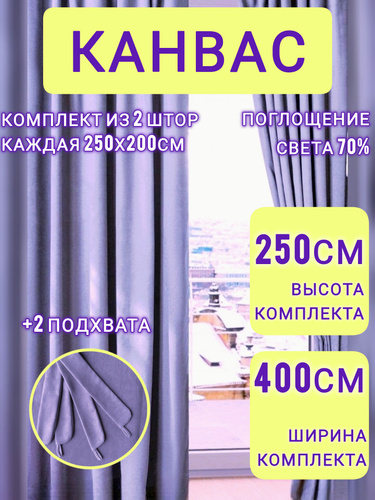 Шторы Фиолетовые комплект однотонные канвас 250*400 см для спальни, зала, гостиной, детской
