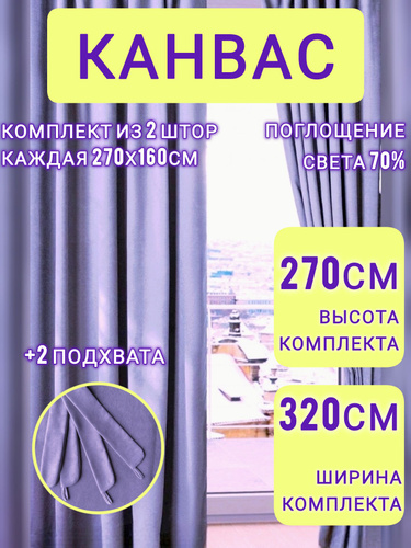 Шторы ФИОЛЕТОВЫЕ комплект однотонные канвас 270*320 см для спальни, зала, гостиной, детской
