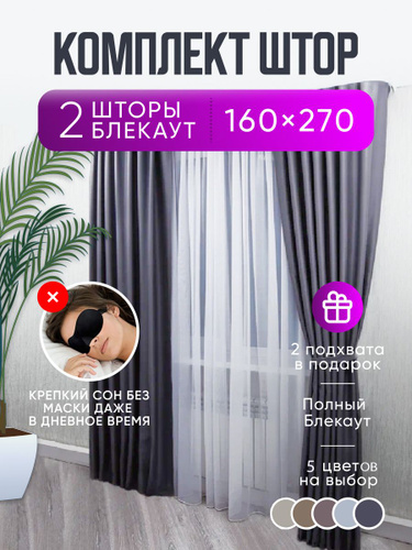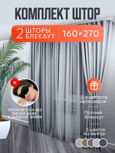 Шторы светло-серые однотонные блэкаут 270*320 см для спальни, гостиной, детской комнаты, зала