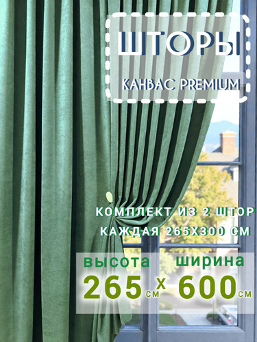 Шторы Канвас ЗЕЛЕНЫЕ комплект однотонные 265*600 см для спальни, зала, гостиной, детской