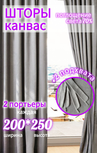 Шторы СЕРЫЕ комплект однотонные канвас 250*400 см для спальни, зала, гостиной, детской