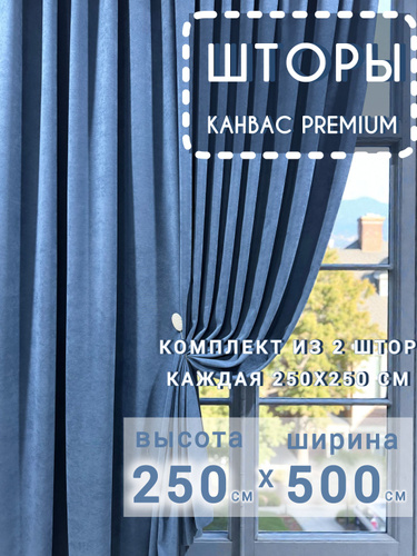 Шторы Канвас СИНИЕ комплект однотонные 250*600 см для спальни, зала, гостиной, детской