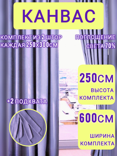 Шторы Фиолетовые комплект однотонные канвас 250*600 см для спальни, зала, гостиной, детской