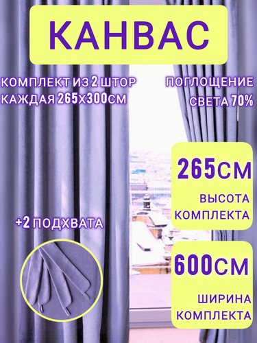 Шторы Фиолетовые комплект однотонные канвас 265*600 см для спальни, зала, гостиной, детской