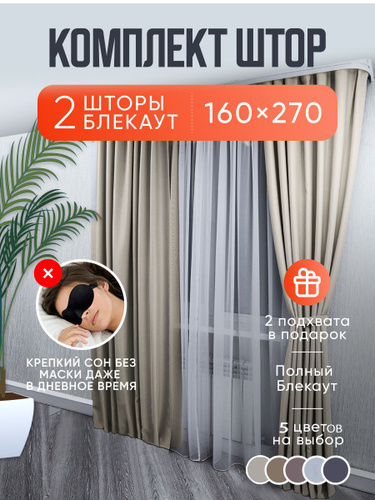 Шторы серо-бежевые однотонные блэкаут 270*320 см для спальни, гостиной, детской комнаты, зала