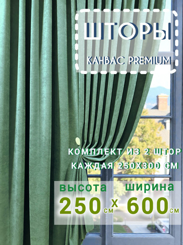 Шторы Канвас ЗЕЛЕНЫЕ комплект однотонные 250*600 см для спальни, зала, гостиной, детской