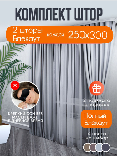 Шторы светло-серые однотонные блэкаут 250*600 см для спальни, гостиной, детской комнаты, зала