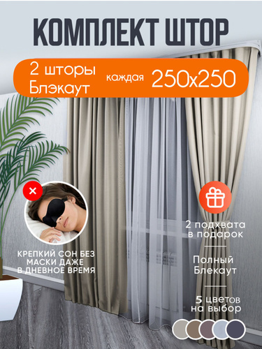 Шторы серо-бежевые однотонные блэкаут 250*500 см для спальни, гостиной, детской комнаты, зала