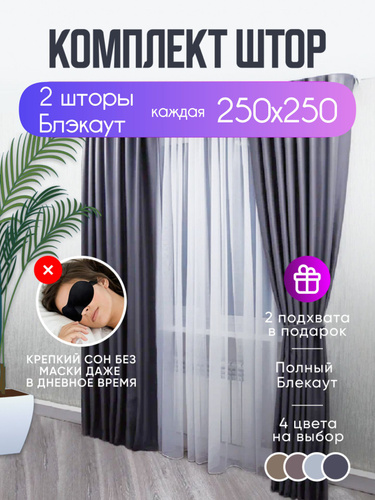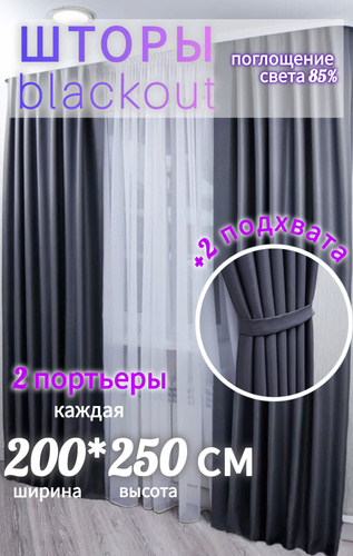 Шторы блэкаут комплект однотонные 250*400 см графит