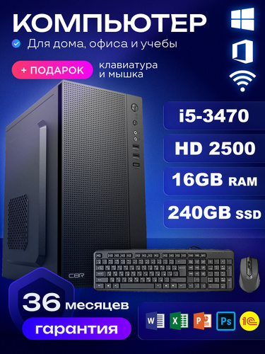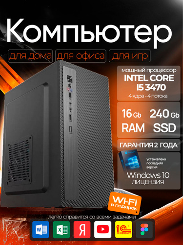 Системный блок Компьютер ПК (Intel Core i5-3470, RAM 16 ГБ, SSD 240 ГБ, Intel HD Graphics, Windows 10 Pro), черный, черный матовый