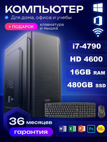 TREIDCOMPUTERS Системный блок (Intel Core i5-4570, RAM 16 ГБ, SSD 480 ГБ, Intel HD Graphics, Windows), черный