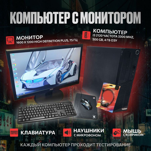 20" Компьютер в сборке (Intel Core i3-2120, RAM 4 ГБ, HDD 500 ГБ, Intel HD Graphics 2000, Windows 10 Pro), 784127, черный матовый, Русская раскладка