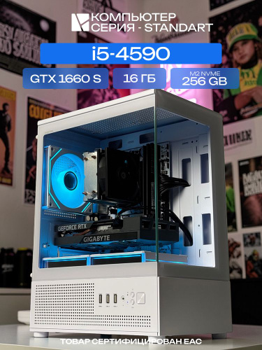 ЮКОМС Системный блок | Игровой компьютер (Intel Core i5-4590, RAM 16 ГБ, SSD 256 ГБ, NVIDIA GeForce GTX 1660 SUPER (6 Гб), Windows 10 Pro), белый