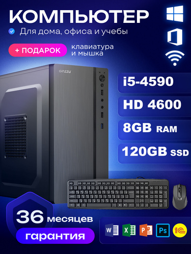 RIWER Системный блок (Intel Core i5-4590, RAM 8 ГБ, SSD 120 ГБ, Intel HD Graphics 4600, Windows 10 Pro), черный матовый