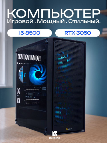 ЮКОМС Системный блок | Игровой компьютер (Intel Core i5-8500, RAM 32 ГБ, SSD 512 ГБ, NVIDIA GeForce RTX 3050 (6 Гб), Windows 10 Pro), черный