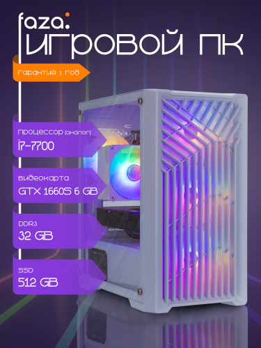 faza Системный блок компьютер (Intel Core i7-7700, RAM 32 ГБ, SSD 512 ГБ, NVIDIA GeForce GTX 1660 SUPER (6 Гб), Windows 10 Pro), белый, прозрачный