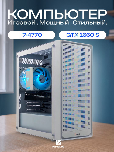 ЮКОМС Системный блок | Игровой компьютер (Intel Core i7-4770, RAM 16 ГБ, SSD 128 ГБ, NVIDIA GeForce GTX 1660 SUPER (6 Гб), Windows 10 Pro), белый