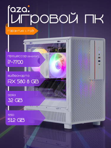 faza Системный блок компьютер (Intel Core i7-7700, RAM 32 ГБ, SSD 512 ГБ, AMD Radeon RX 580 (8 Гб), Windows 10 Pro), белый, зеркальный